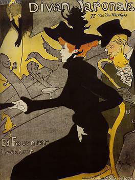 Another poster Toulouse-Lautrec announcing a local fashion - see Ambassadeurs - shows a strong influence of Degas in the composition. Divan Japonais